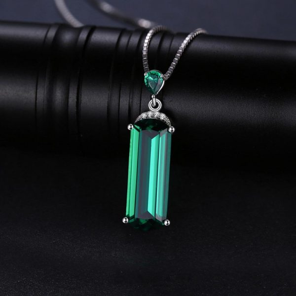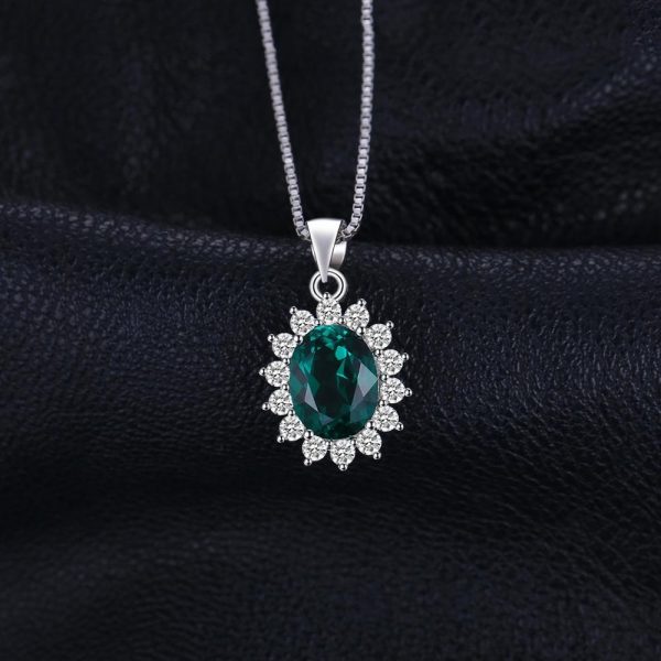 Princess Diana Inspired Simulated Green Emerald Pendant Necklace in 925 Sterling Silver
