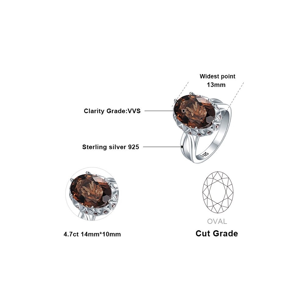 Home Rings 5.7ct Genuine Oval Smoky Quartz Ring in 925 Sterling Silver