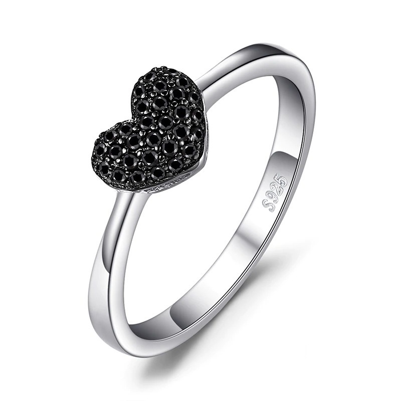 Home Rings Black Spinel Heart Love Ring in 925 Sterling Silver