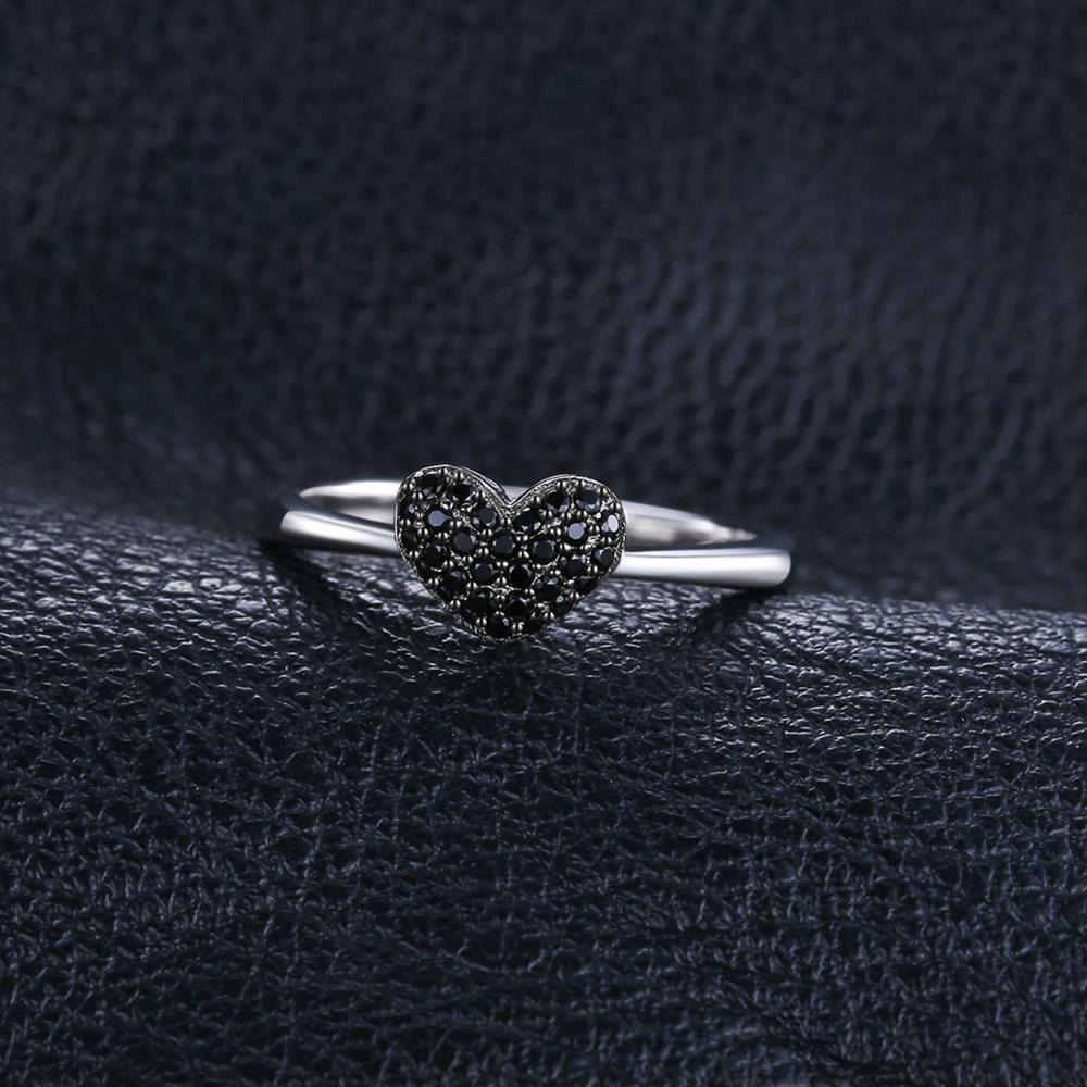Black Spinel Heart Love Ring in 925 Sterling Silver