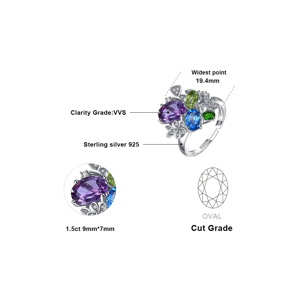 Be the first to review “Flower Amethyst Blue Topaz Adjustable Ring in 925 Sterling Silver” Cancel reply