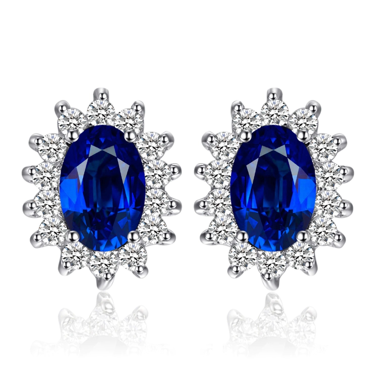 Home Earrings Royal Blue Sapphire Stud Earrings in 925 Sterling Silver