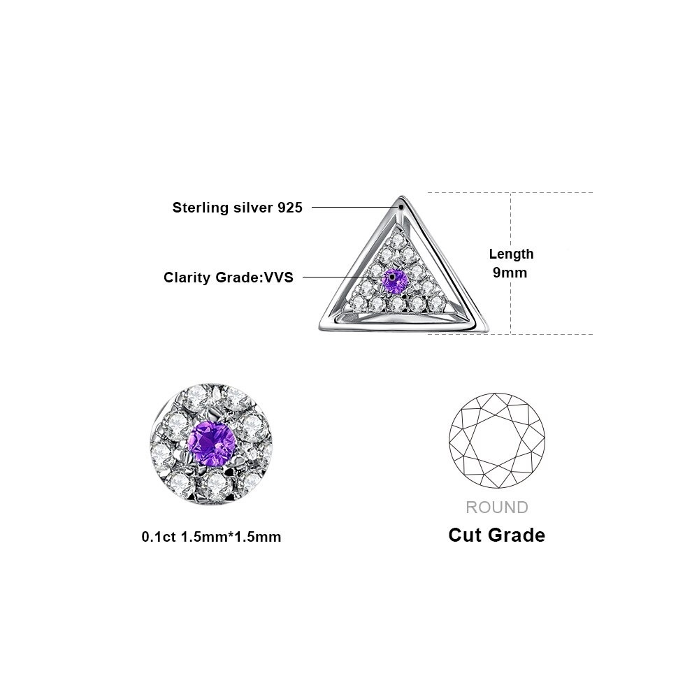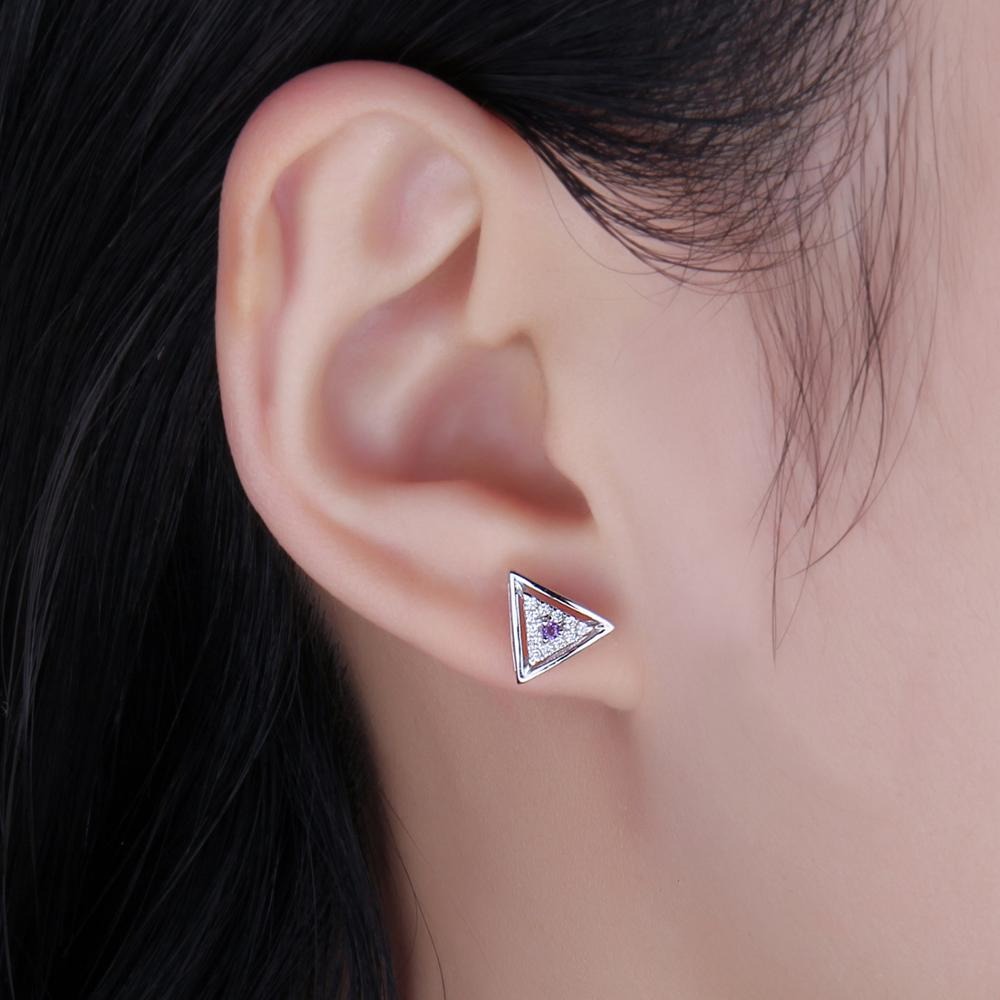 Home Earrings Triangle Natural Purple Amethyst Stud Earrings in 925 Sterling Silver